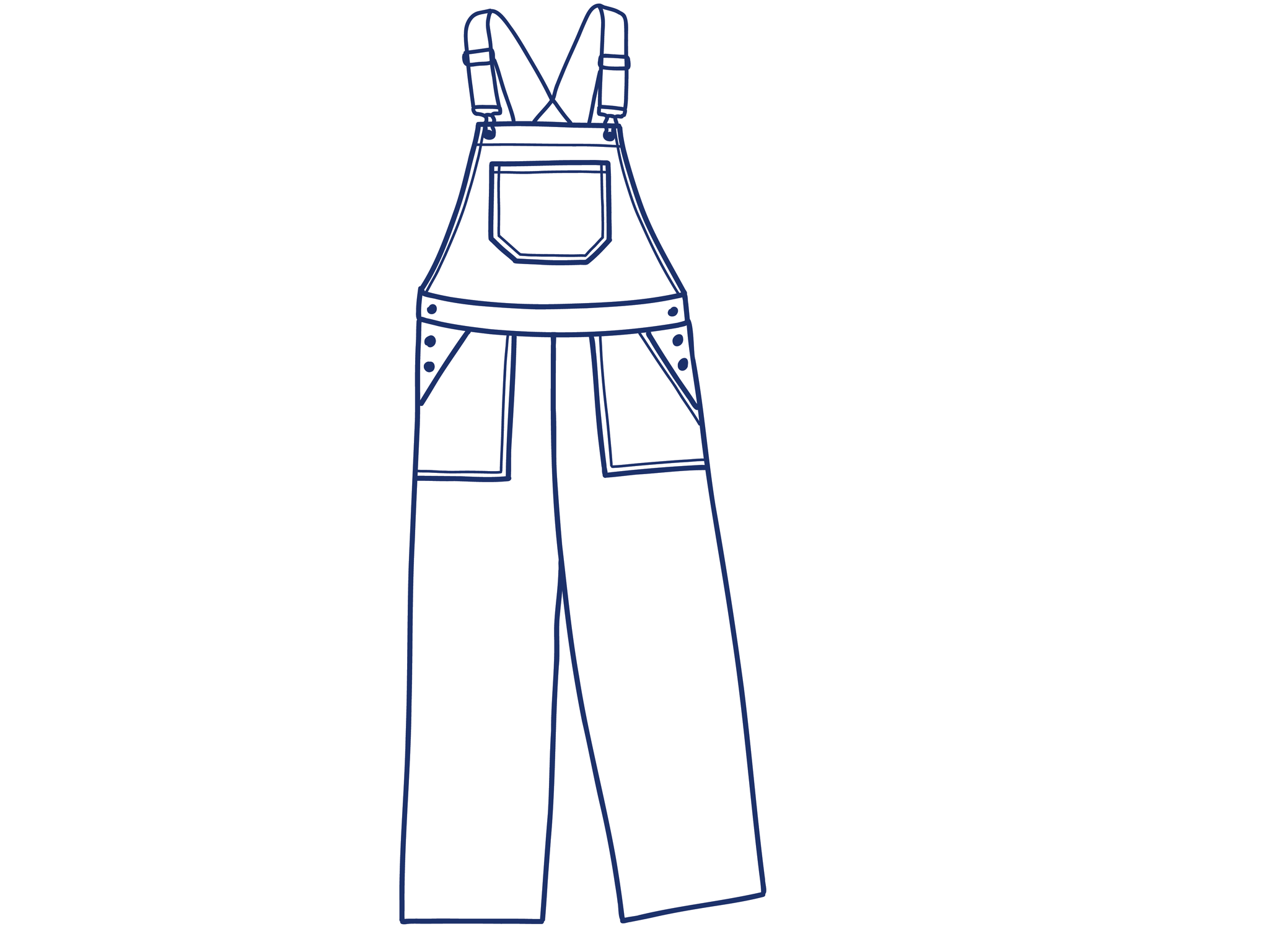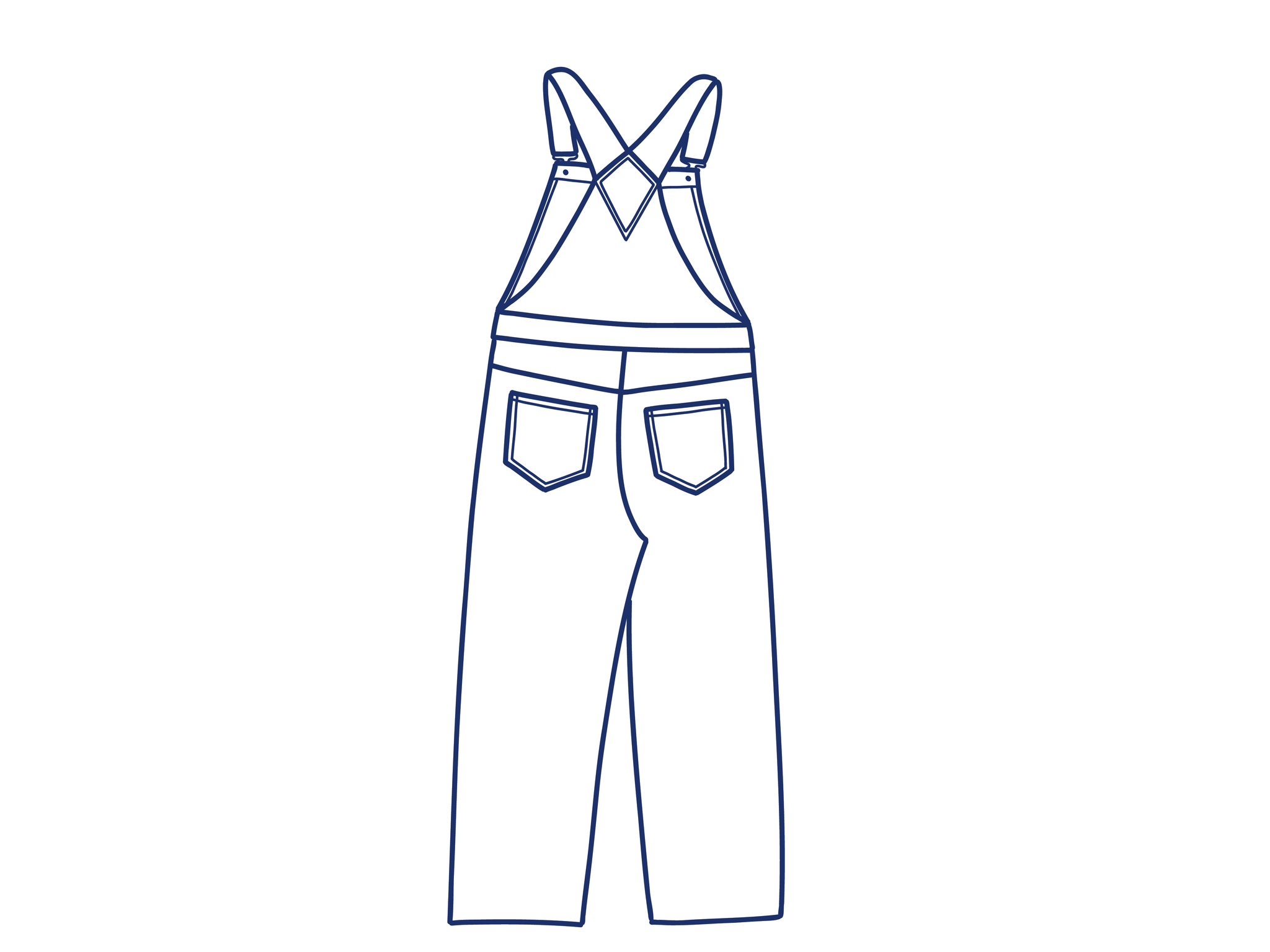 Elsie has everything you’re looking for in dungarees: topstitched pockets at front and back, loose trouser legs that you can roll up for a casual look and a back piece with diamond shape where the shoulder straps are attached. The dungarees are closed with 3 (jeans) buttons at both sides. Use a middle-weight cotton, linen, denim or corduroy for Elsie and create a different look when using a plain fabric versus a striped jeans like we did!