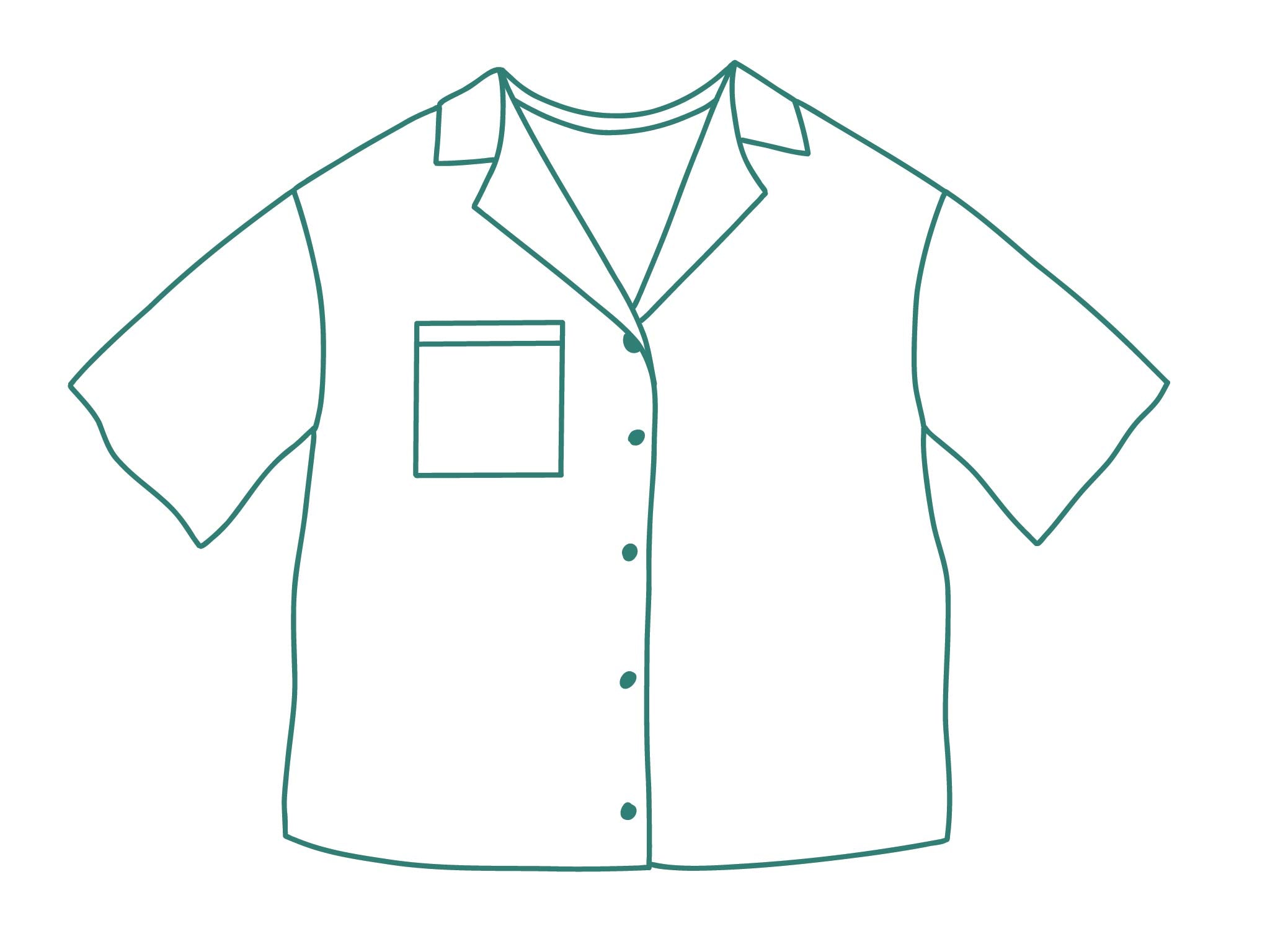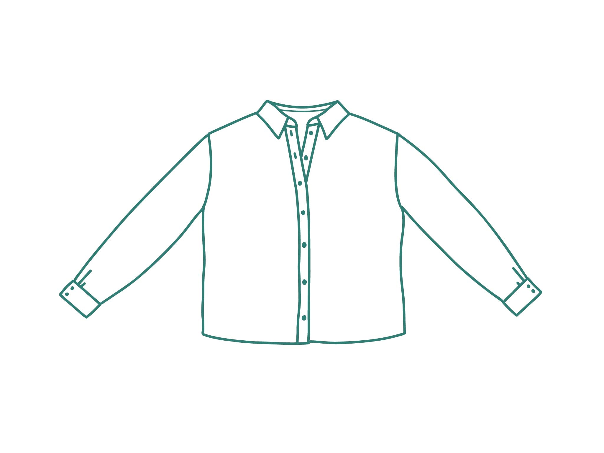 Este is a pattern which allows you to make 2 versions of a buttoned shirt. It's an oversized model with dropped shoulders, a back yoke and pleat. You can choose between a classic shirt collar and a lapel collar, and between a long sleeve with cuffs, or a wider, short sleeve. A front and back facing are included for the lapel collar.