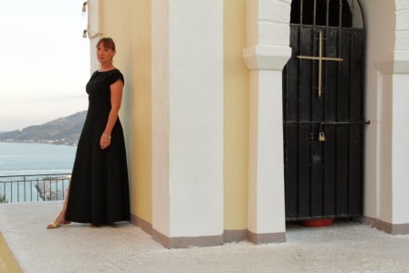 And here she is. This time I stuck with the slash neck but made it full length with a thigh high(ish) split.