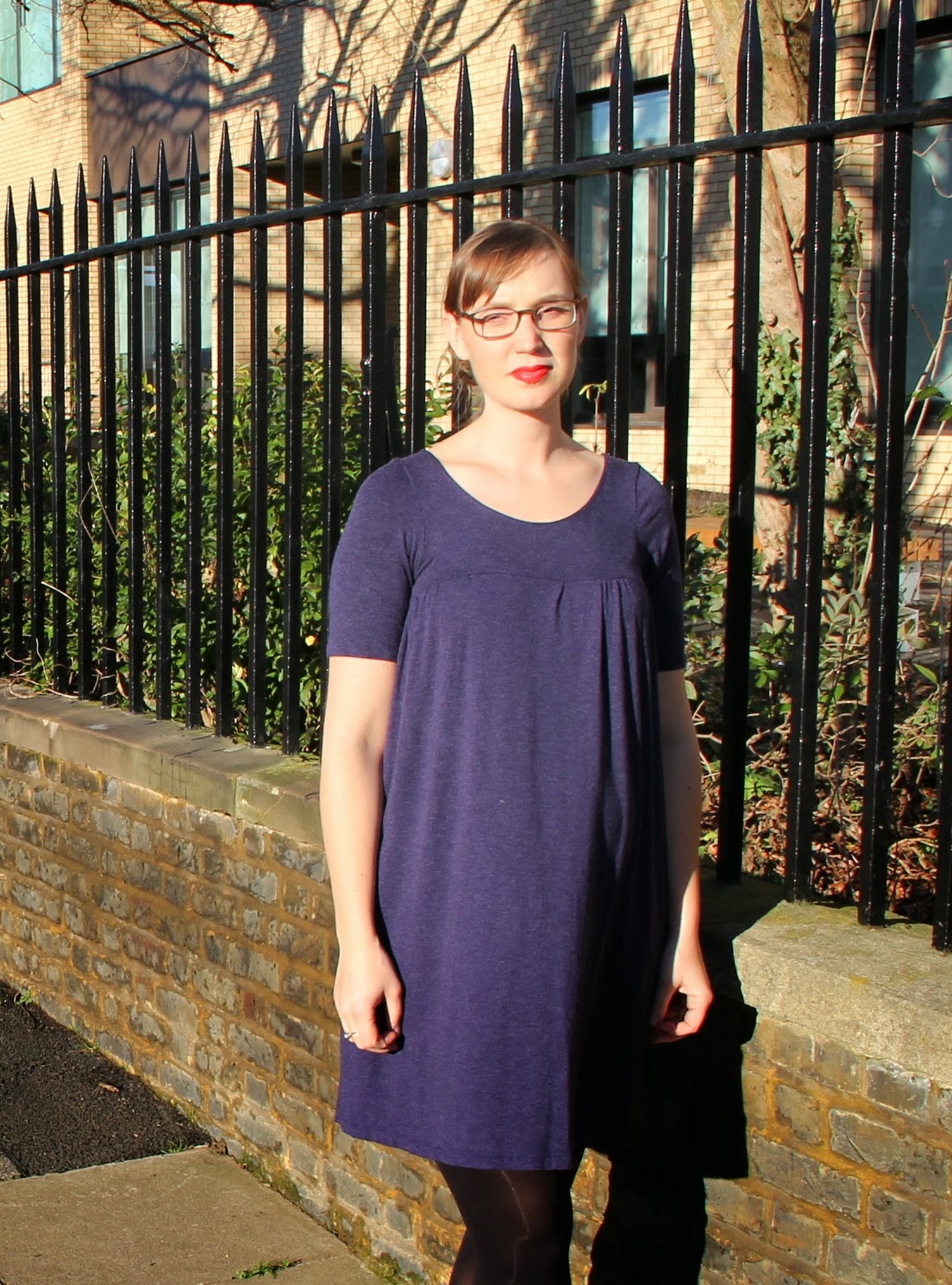 I choose a wool and viscose jersey mix in French Navy to make this dress in and it worked a treat. It was a great chance for me to get out my overlocker and use it on a real life project not just practice runs. Two of my Resewlutions ticked off already and January is only just over! I also spent plenty of time testing to get the top stitching of the neckline, sleeves and hem to work. Use a scrap piece of fabric and play about with the tensions and stitch lengths to get it just right, takes a while but well worth the time put in. The dress pattern comes up quite short and as I am 5'9" I added an extra few inches (not a big fan of my thighs even with black opaques) and I love this length.