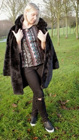 Confession: I actually made this sequin top last year but have only just got round to blogging about it. Still I think it is totally swoon worthy therefore had to be seen plus you can all have a laugh at how cold I look in the photos, I kept my big (fake) fur coat on as much as possible just pulling it off my shoulder for the pictures brrrr.