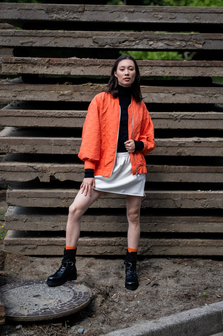 There are many fabrics that lend themselves to making a bomber jacket. From a woven woollen coat fabric to a knitted woollen (jacquard) jersey. but also jumper fabric. punta di roma. scuba or neoprene: all beautiful options that give the bomber jacket extra character. Satin. embroidered fabrics. woven jacquard. imitation leather and felt create a completely different effect. but are just as beautiful.