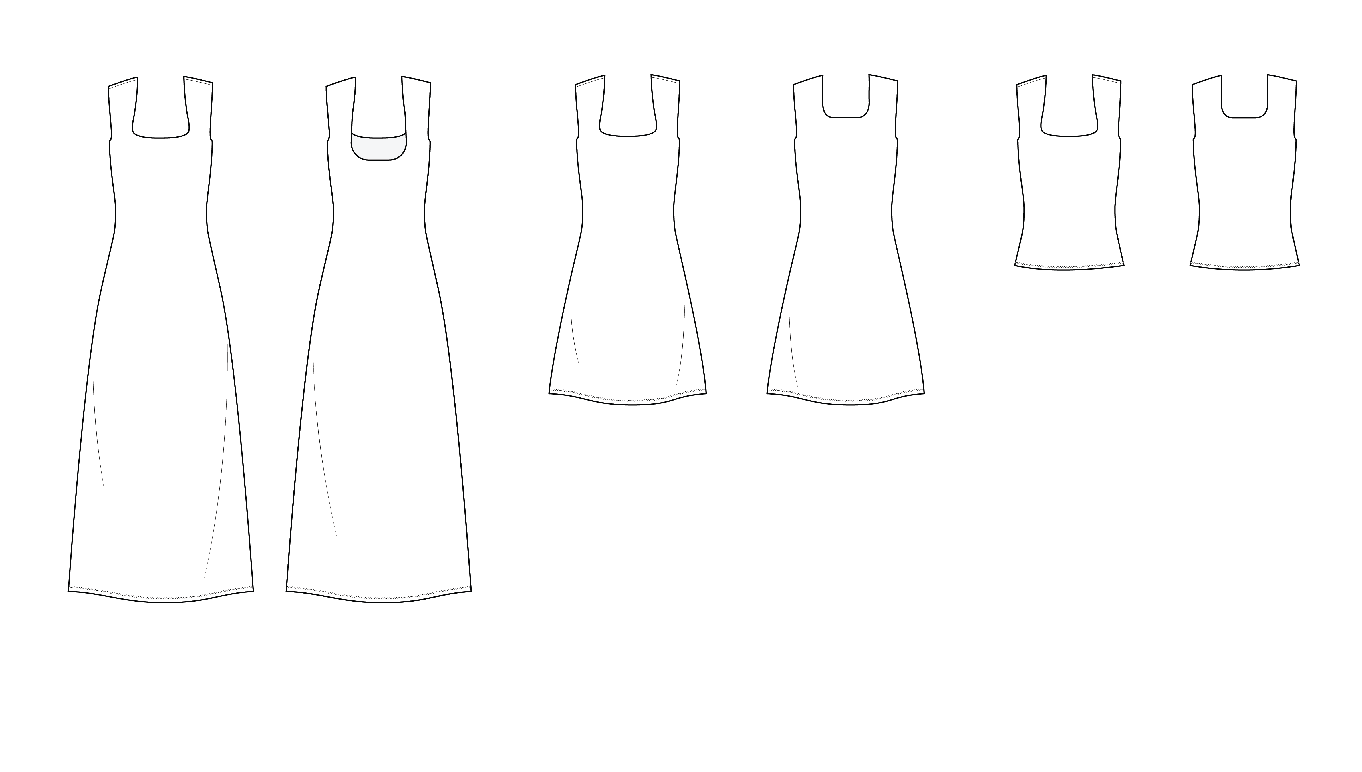 The Collins is a quick and satisfying sew with options galore! Sew it up as a top, short dress, or tea length dress. The pattern also comes with two cup size options as well as low or high (bra friendly) back options. The Collins is designed for knit fabrics and has an integrated shelf bra. It is form fitting without being too tight. The dress hemline features a slight A-line sweep. This is the type of pattern you’ll want to sew again and again!