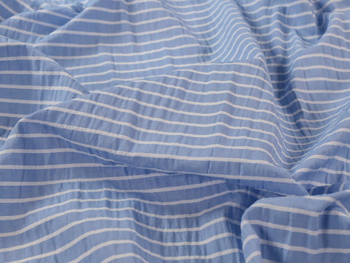 A gorgeous classic blue and white stripe on a seersucker with a beautiful textural finish.