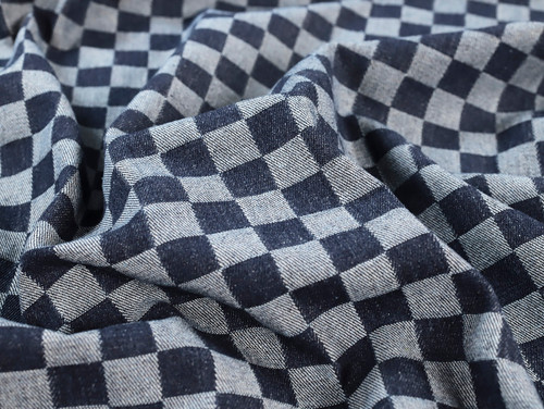 A wonderful denim dressmaking fabric in a lovely indigo colour with a light blue check design.