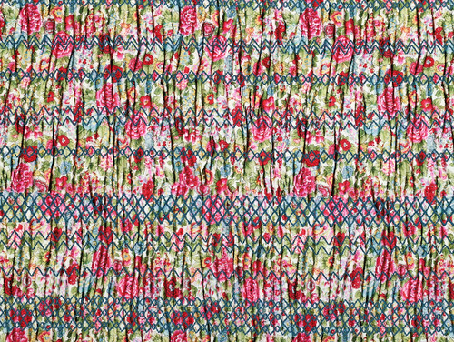 Looking back to Liberty’s 1887 childrenswear department and the enduring charm of smocked dresses from that era, this unusual pattern is a fresh take on our beloved classic, Elysian. Delicate diamond-shaped stitches create a series of textured pleats and folds, creating the illusion of a beautifully nostalgic floral fabric gathered into a garment.