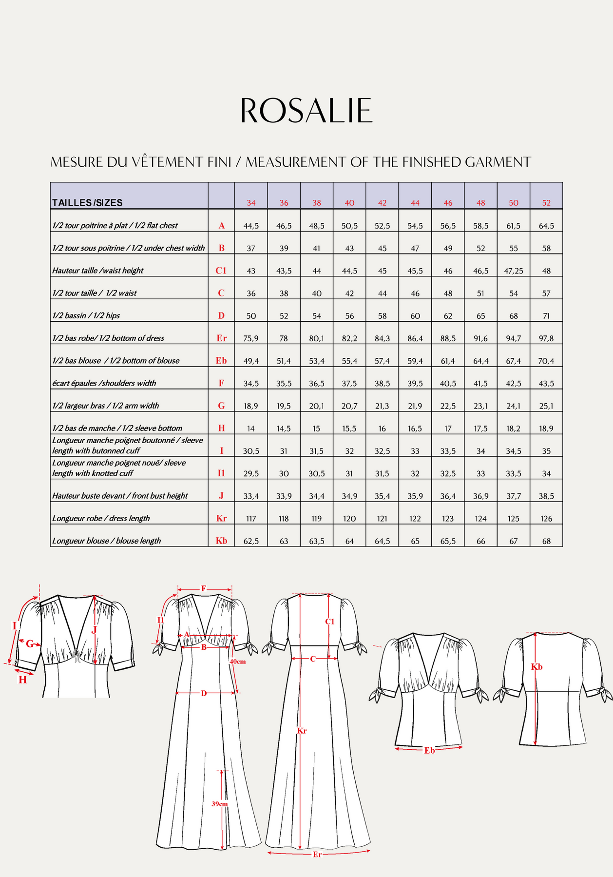 Size: From 34 to 52, for a height of 1m 65. See below for size chart.