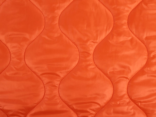 A stunning quality deadstock quilted puffer fabric with a onion stitched design with a fine layer of wadding in between the layers. One side features a bright orange colour and the inside is lined with a slightly darker, more muted orange colour.