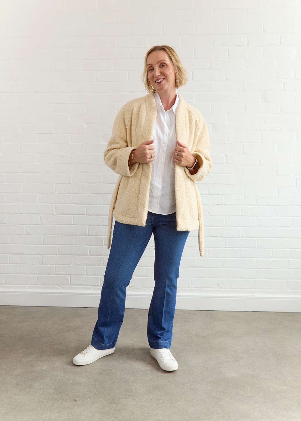 Included this month, you will receive this stunning Boucle coating fabric. Cosy and comfy and perfect for Autumn. You will receive enough fabric to make the short version with the belt tie. If you require extra fabric, check the links below for your matching fabric.