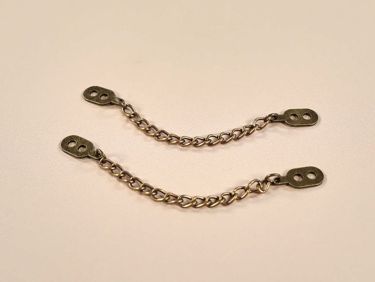 We know that when you make your own clothes, it’s the finishing touches that count. So we have included for you two beautiful coat hanging chains in a antique brass colourway.