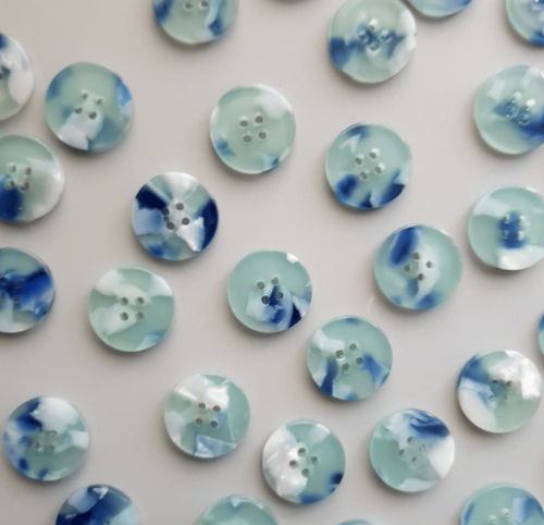 Made from resin these kinds of buttons are tough, glossy and have a smooth texture.