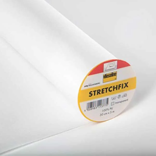 Stretchfix by Vlieseline is an elastic heat-activated web-on transfer paper, suitable for jersey. For appliques on textiles or for joining two different fabrics. Maintains the elasticity of the fabric.