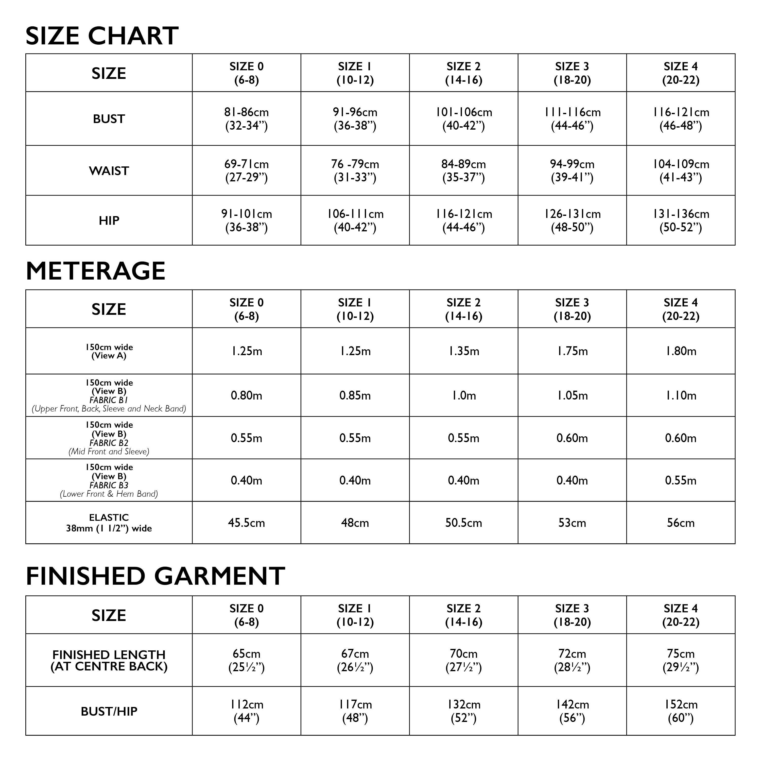 Notions: thread, 2.5mm stretch twin needle (optional), 38mm (1 1/2") wide elastic (for sleeves with elasticised cuffs View B only)