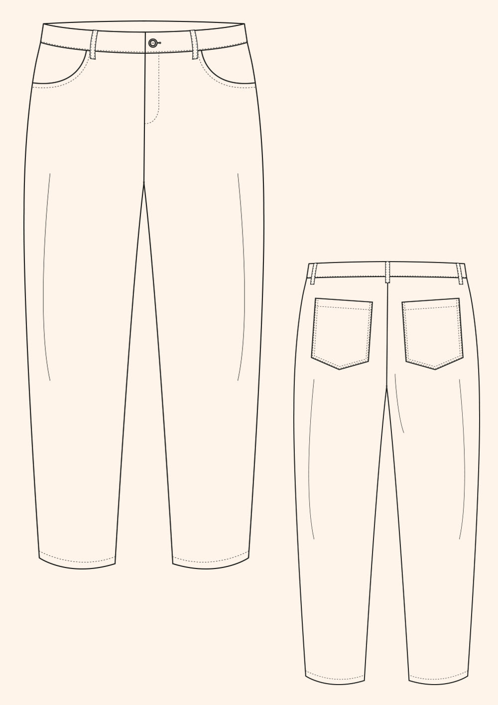 Suitable fabrics: The Worker Trouser works very well in structured heavy to mid weight twills, drills, denims and canvas fabrics. Lighter twills and denims are lovely in the summer and the lighter weight fabrics will give you a slightly looser fit. Before you start check you can easily sew through 5 layers of your chosen fabric.