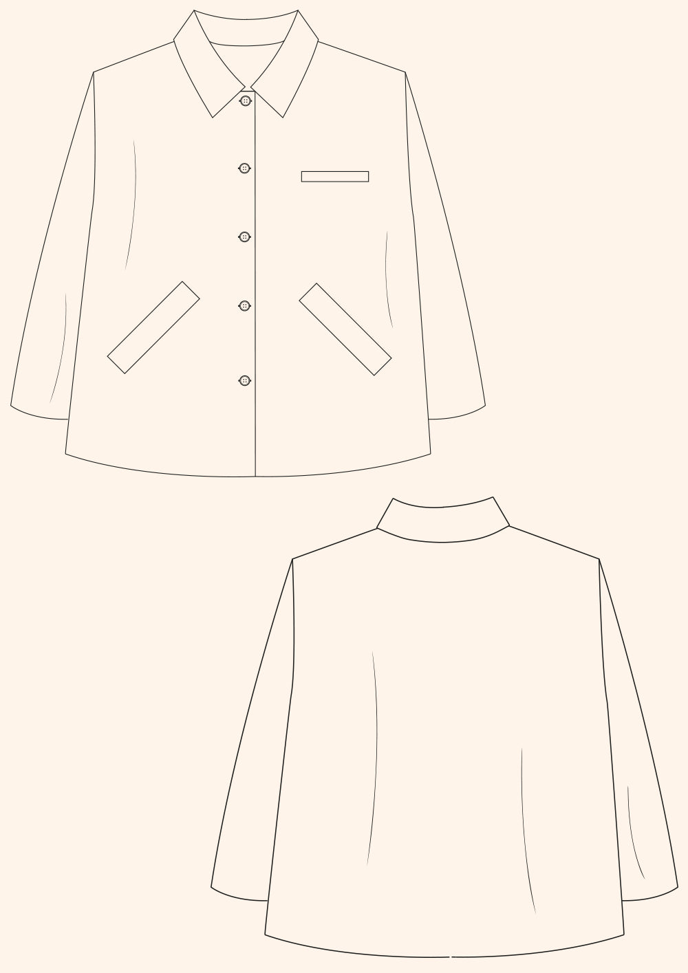 Suitable fabrics: This piece works in a huge range of fabrics, from wools and wax cottons to heavy cottons & linens. You can always leave summer variations of this jacket unlined.