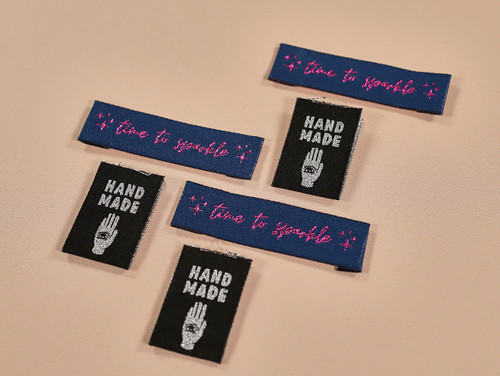 x3 End fold labels - these labels are ideally sewn onto the garment (either inside or displayed visibly) by top stitching each end.
