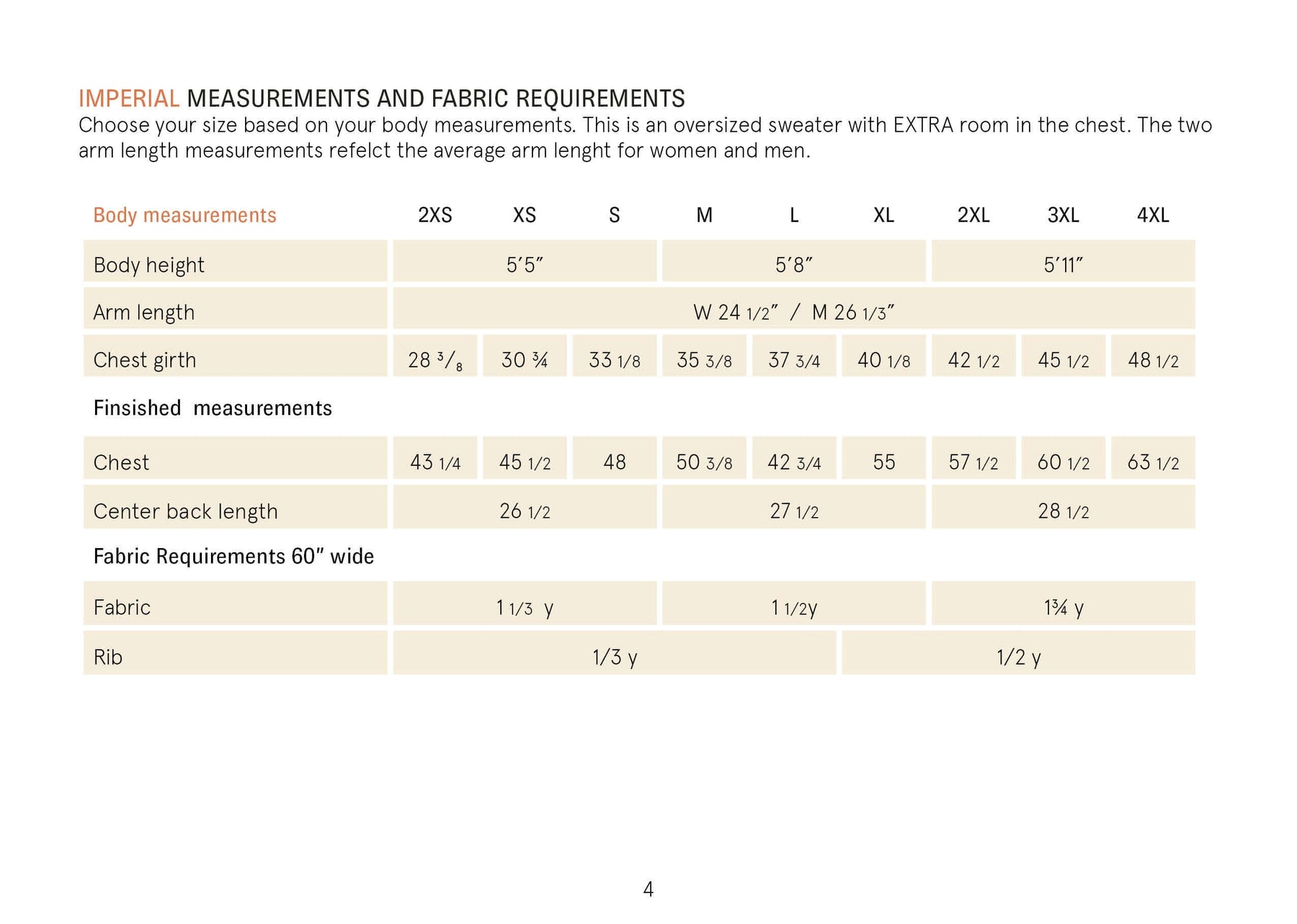 The Sewing pattern includes sizes 2XS-4XL.