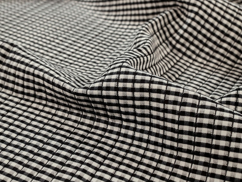 Xavier Gingham Stripe Quilted Cotton - Black & White is 148cm wide and 500gsm. It is 59% cotton, 41% poly.
